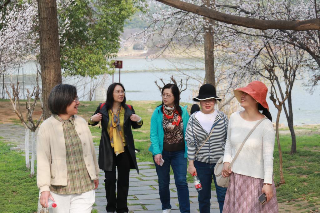 湖溪河畔,阳光普照,微风拂面,路旁的杨柳也招展起了枝条,天朗气清,令人惬意。沿着绿道,河畔风景依旧,却多了一群平日对工作兢兢业业的女园丁,她们闲庭信步,举手投足之间都透露出当代知识女性独特的魅力与自信。一路上,大家有说有笑,从工作趣事到生活琐事、从教学经验到沿途风景,无话不谈。